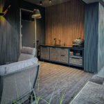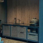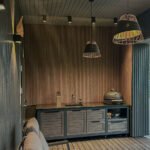 Apdaila, fasadai – natūralaus ąžuolo masyvas, itin kruopščiai paruoštu paviršiumi, padengtas „Osmo“ medžio alyva.