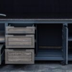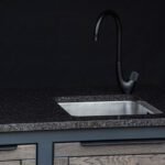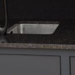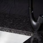 Stalviršis – HPL Compact 12mm (juodu užpildu) arba Tamsus granitas.