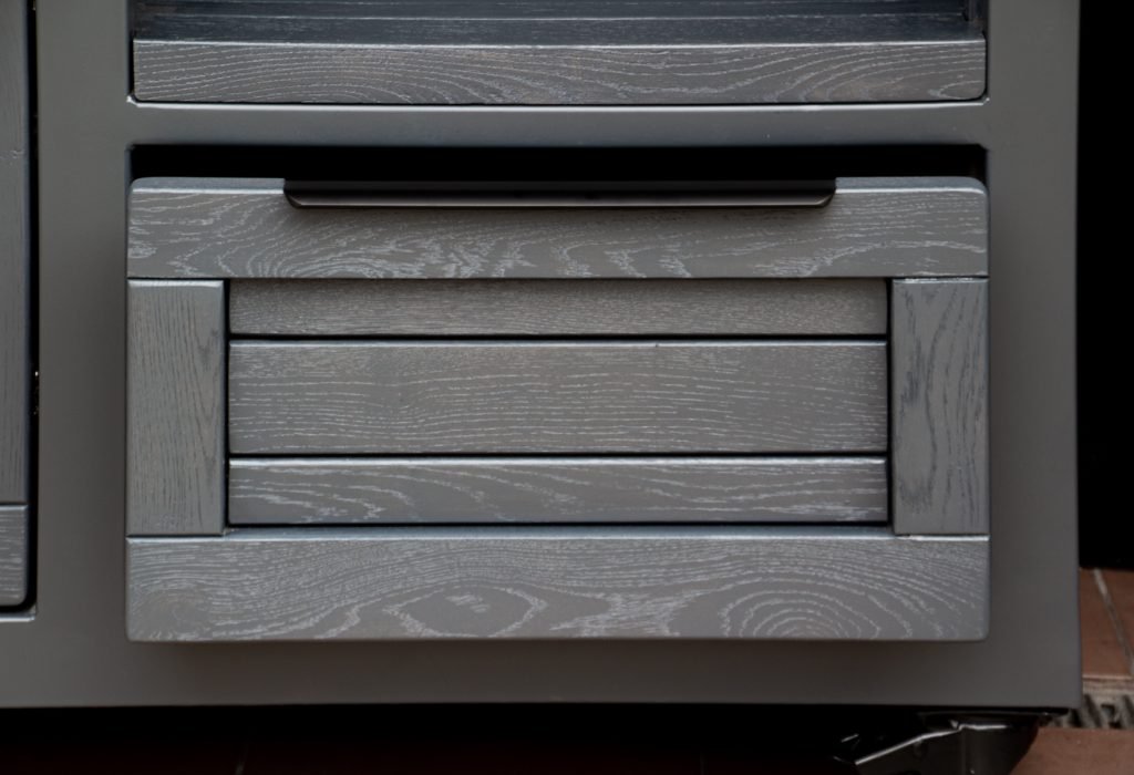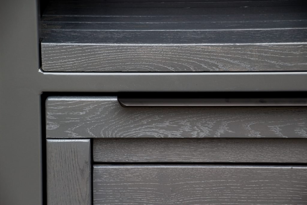 Apdaila, fasadai – natūralaus ąžuolo masyvas, itin kruopščiai paruoštu paviršiumi, padengtas „Osmo“ medžio alyva.